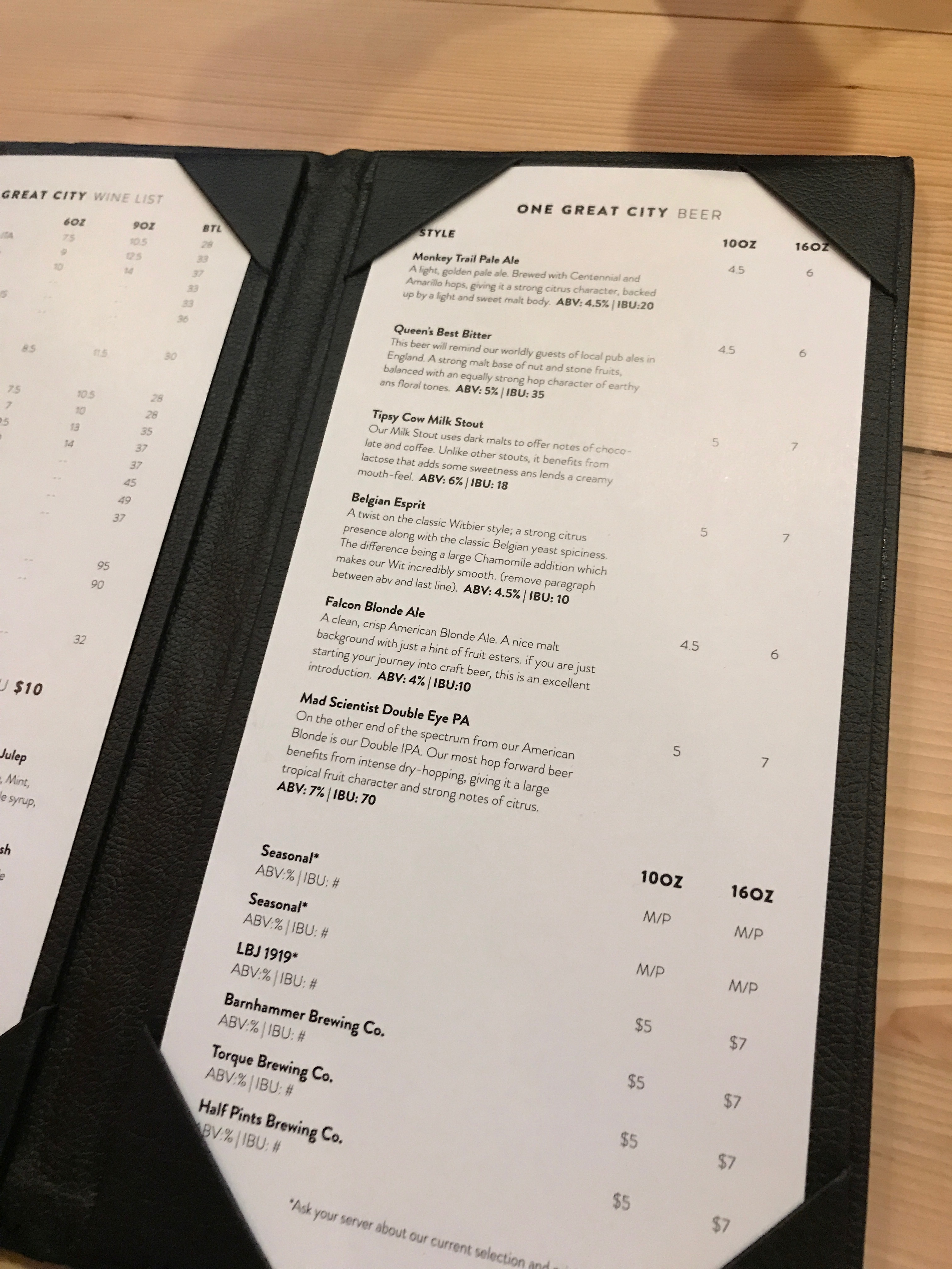 One Great City Beer Menu